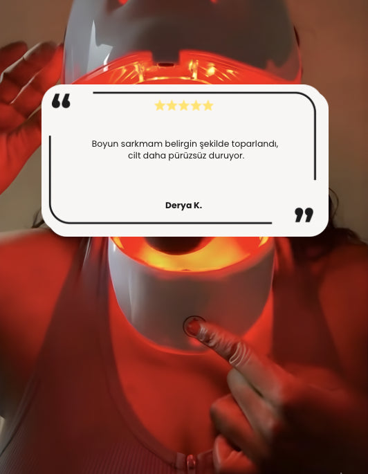 Evet. "Venüs Halkaları" ve "Tech-Neck" dediğimiz çizgiler, boyun bölgesindeki kolajen kaybı ve sürekli aşağı bakma (telefona bakma) sonucu oluşur. Cihazımızdaki Kırmızı ve Beyaz Işık modları, doğrudan bu bölgedeki kolajen üretimini tetikleyerek çizgilerin içinin dolmasına ve görünümün yumuşamasına yardımcı olur. En iyi sonuç için 4-8 hafta düzenli kullanım öneriyoruz.